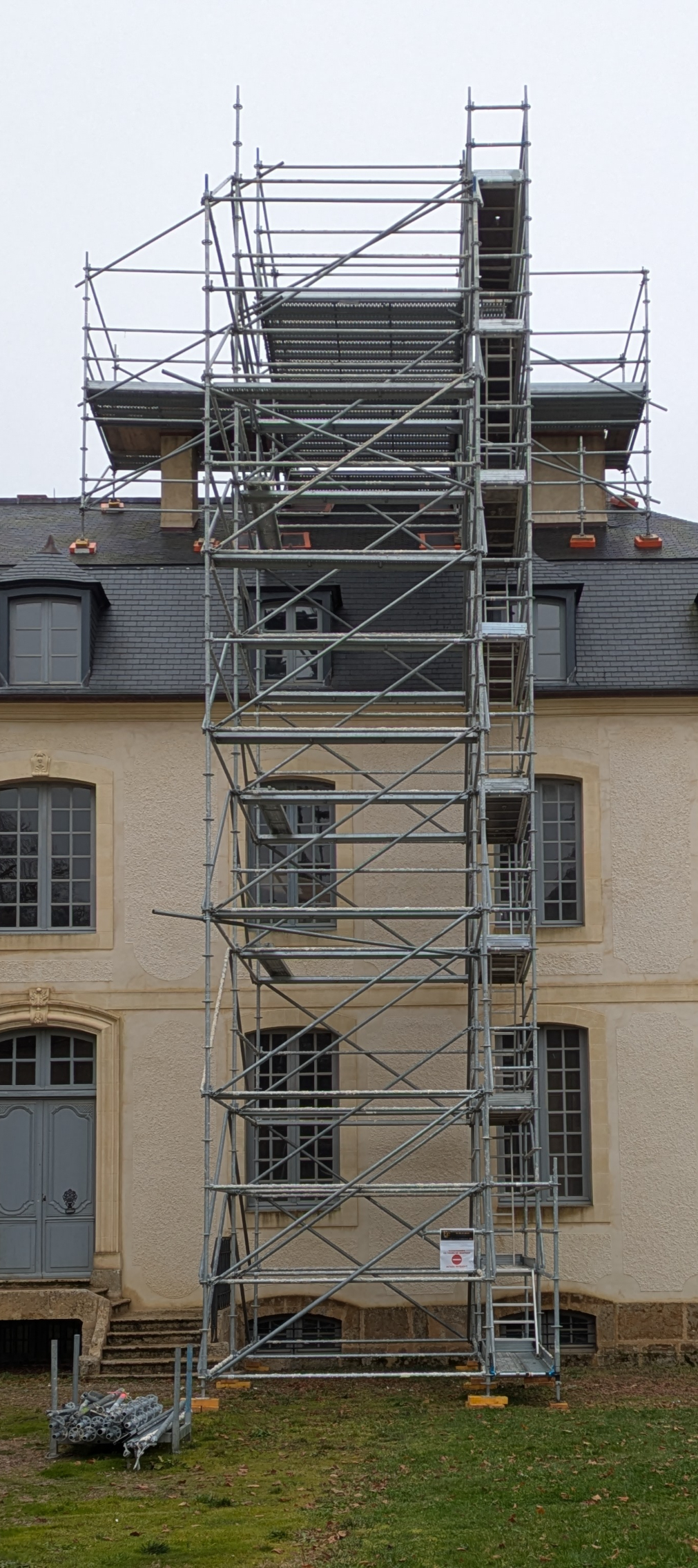 Tour escalier Sapine d'accès Plate-forme Départ sur un pied Structure auto stable Pare-gravats...